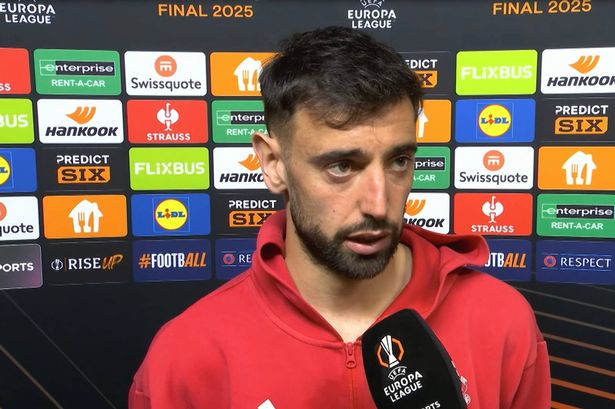 Manchester United Captain Bruno Fernandes Speaking to The Media During Post-Europa League Final Loss. Photo Credit: Morganable