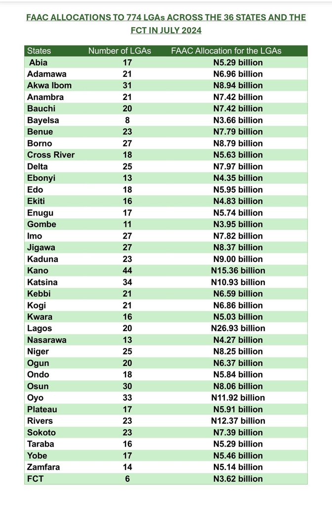Chart Depicting Federal Allocation To Local Governments in Each State. Photo Credit: Morganable