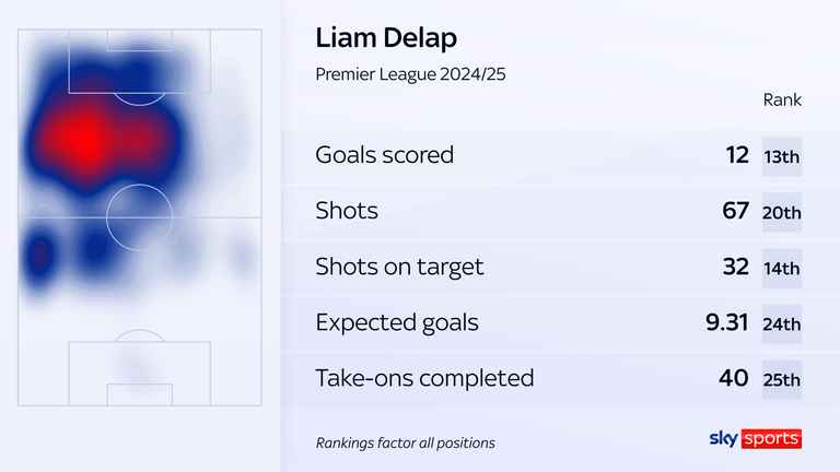 Liam Delap, while at Ipswich Town, netted 12 goals in 37 matches in his first Premier League season with the club, despite Kieran McKenna’s team being relegated back into the Championship.