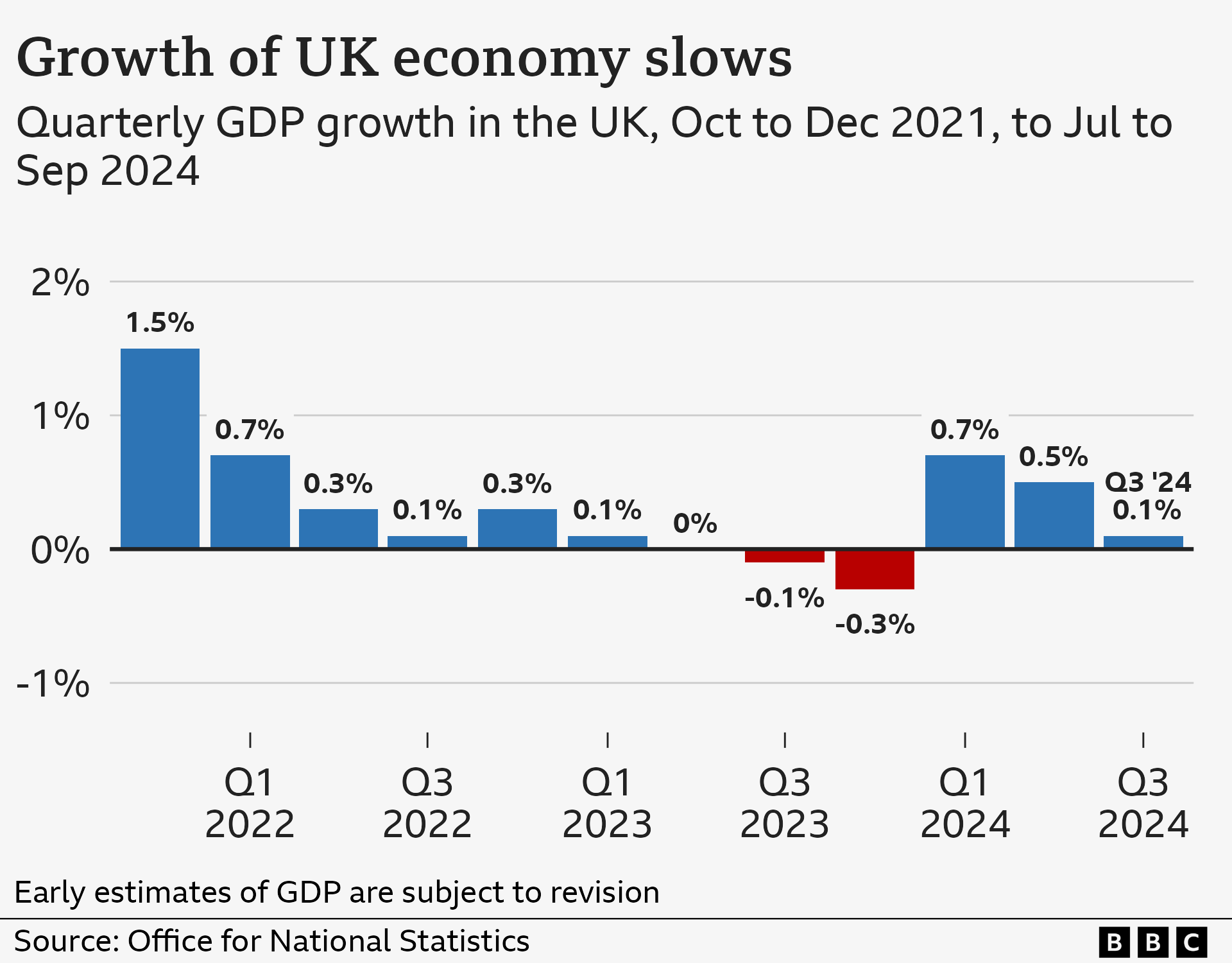 “The UK’s economic growth has been slow, with a growth rate of 0.1% in Quarter three (July to September, 2024).